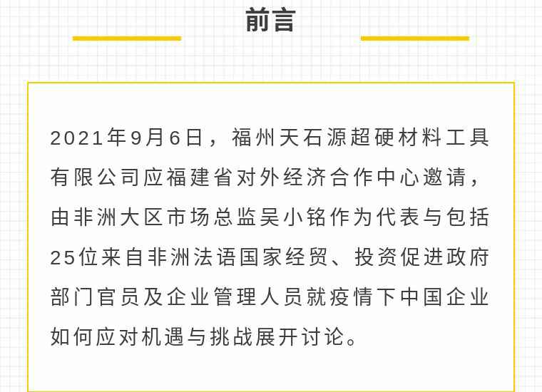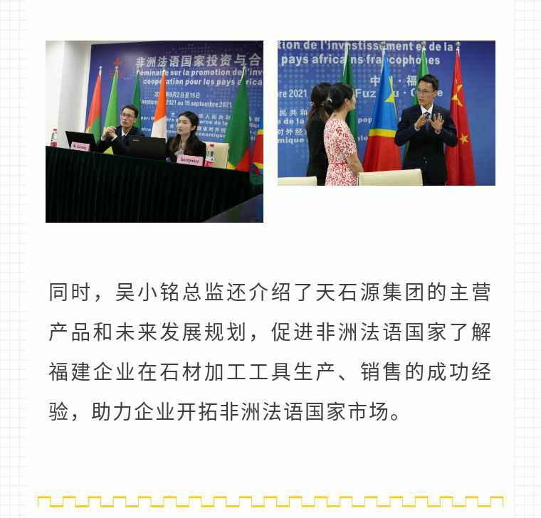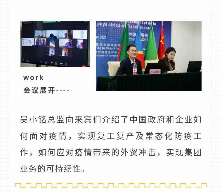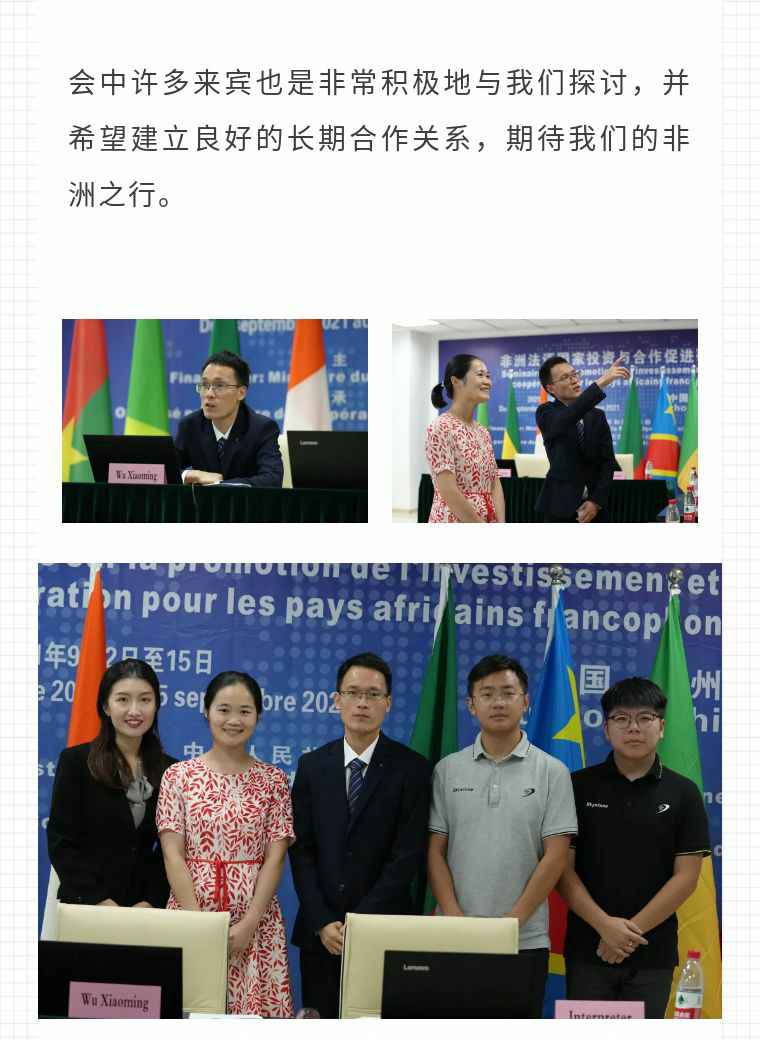 2021年9月6日,米兰体育·米兰官方网站-米兰体育(中国)应福建省对外经济合作中心邀请,由非洲大区市场总监吴小铭作为代表与包括25位来自非洲法语国家经贸、投资促进政府部门官员及企业管理人员就疫情下中国企业如何应对机遇与挑战展开讨论。